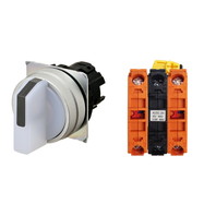 セレクタスイッチ(φ22), 照光, 3ノッチ, 金属ベゼル, 左右に自動復帰, 操作部色: 白(透明), IP66, ねじ端子台, 接点構成: NC/点灯ユニット/NC, LEDランプ色: 黄, LEDランプ電圧: AC/DC24V