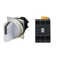 セレクタスイッチ(φ22), 照光, 3ノッチ, 金属ベゼル, 左右に自動復帰, 操作部色: 白(透明), IP66, プッシュインPlus端子台, 接点構成: NO/点灯ユニット/NC, LEDランプ色: 白, LEDランプ電圧: AC/DC6V