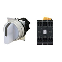 セレクタスイッチ(φ22), 照光, 3ノッチ, 金属ベゼル, 左右に自動復帰, 操作部色: 白(透明), IP66, プッシュインPlus端子台, 接点構成: NC/点灯ユニット/NC, LEDランプ色: 黄, LEDランプ電圧: AC/DC12V