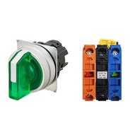 セレクタスイッチ(φ22), 照光, 3ノッチ, 金属ベゼル, 左に自動復帰, 操作部色: 緑(透明), IP66, ねじ端子台, 接点構成: NO/点灯ユニット/NC, LEDランプ色: 緑, LEDランプ電圧: AC100/110/120V
