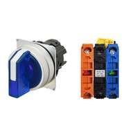 セレクタスイッチ(φ22), 照光, 3ノッチ, 金属ベゼル, 手動復帰, 操作部色: 青(透明), IP66, ねじ端子台, 接点構成: NO/点灯ユニット/NC, LEDランプ色: 青, LEDランプ電圧: AC/DC12V