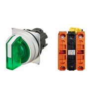セレクタスイッチ(φ22), 照光, 3ノッチ, 金属ベゼル, 手動復帰, 操作部色: 緑(透明), IP66, ねじ端子台, 接点構成: NC/点灯ユニット/NC, LEDランプ色: 緑, LEDランプ電圧: AC100/110/120V