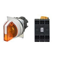 セレクタスイッチ(φ22), 照光, 3ノッチ, 金属ベゼル, 手動復帰, 操作部色: 橙(透明), IP66, プッシュインPlus端子台, 接点構成: NO/点灯ユニット/NO, LEDランプ色: 橙, LEDランプ電圧: AC/DC24V