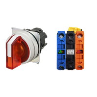 セレクタスイッチ(φ22), 照光, 3ノッチ, 金属ベゼル, 右に自動復帰, 操作部色: 赤(透明), IP66, ねじ端子台, 接点構成: NC/点灯ユニット/NO, LEDランプ色: 赤, LEDランプ電圧: AC/DC12V