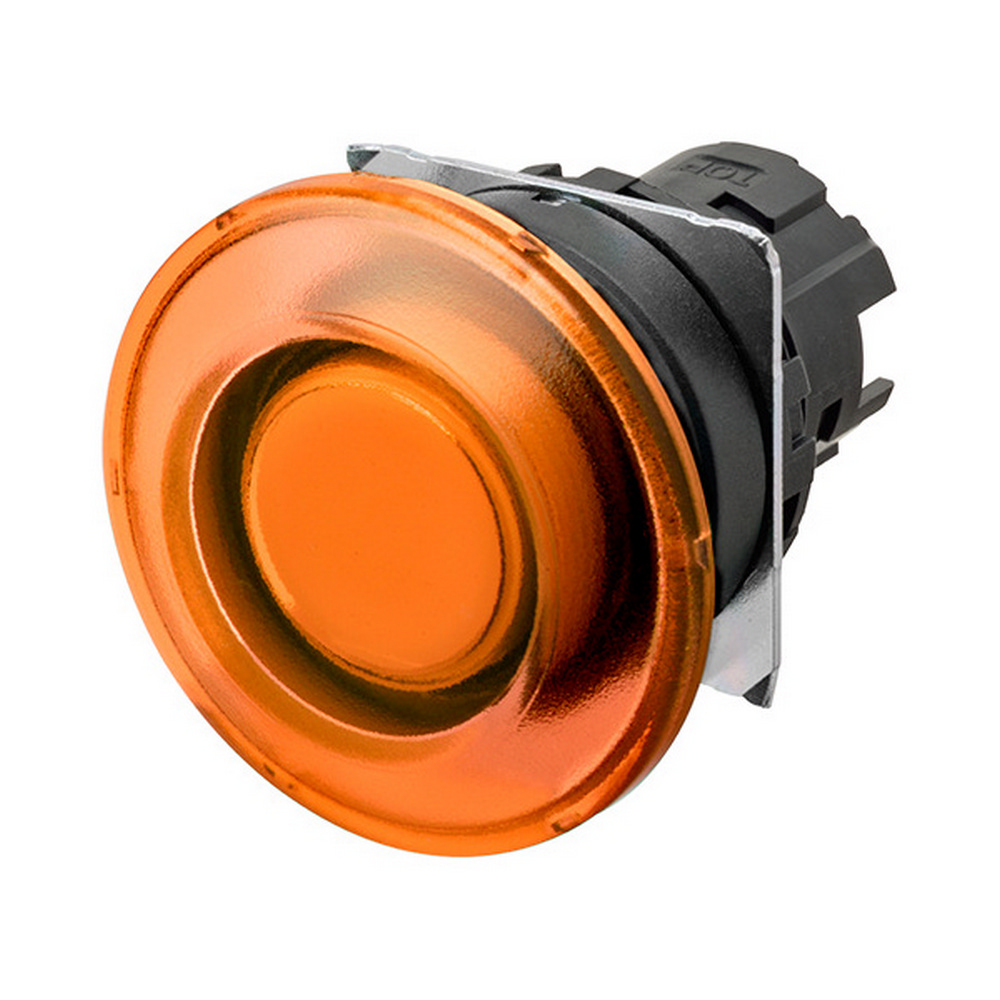 押ボタンスイッチ(φ22), 操作部単品, きのこ形, 照光, 橙(透明), ベゼル材質: 樹脂, オルタネイト