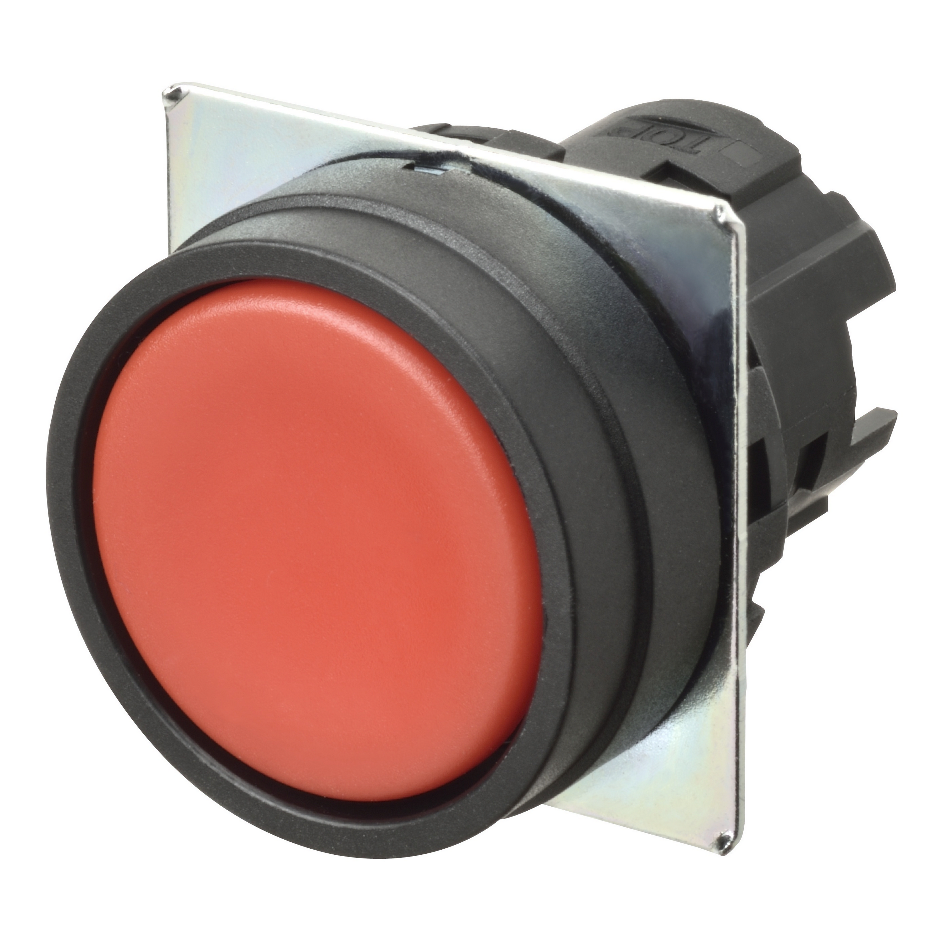 押ボタンスイッチ(φ22), 操作部単品, 平形, 非照光, 赤(不透明), ベゼル材質: 樹脂, モーメンタリ