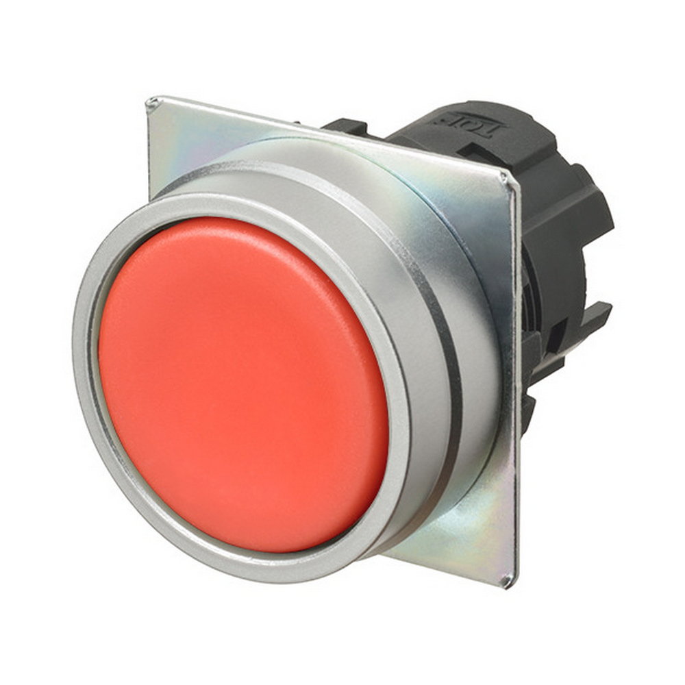 押ボタンスイッチ(φ22), 操作部単品, 平形, 非照光, 赤(不透明), ベゼル材質: 金属, モーメンタリ