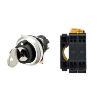 キー形セレクタスイッチ(φ30), 3ノッチ, 金属ベゼル, 右に自動復帰, キー右抜け, IP66, プッシュインPlus端子台, 接点構成: NO/NO/-