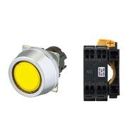 押ボタンスイッチ(φ30), 照光, 金属ベゼル, フルガード形, オルタネイト, ボタンの色: 黄(透明), IP66, プッシュインPlus端子台, 接点構成: -/点灯ユニット/NC, LEDランプ色: 黄, LEDランプ電圧: AC/DC6V