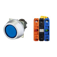 押ボタンスイッチ(φ30), 照光, 金属ベゼル, フルガード形, モーメンタリ, ボタンの色: 青(透明), IP66, ねじ端子台, 接点構成: NO/点灯ユニット/NC, LEDランプ色: 青, LEDランプ電圧: AC/DC24V