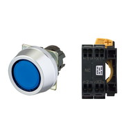 押ボタンスイッチ(φ30), 照光, 金属ベゼル, フルガード形, モーメンタリ, ボタンの色: 青(透明), IP66, プッシュインPlus端子台, 接点構成: -/点灯ユニット/NC, LEDランプ色: 青, LEDランプ電圧: AC/DC24V