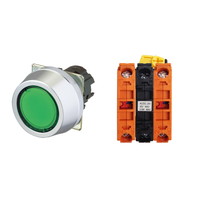 押ボタンスイッチ(φ30), 照光, 金属ベゼル, フルガード形, モーメンタリ, ボタンの色: 緑(透明), IP66, ねじ端子台, 接点構成: NC/点灯ユニット/NC, LEDランプ色: 緑, LEDランプ電圧: AC200/220/230/240V