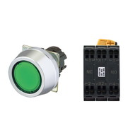 押ボタンスイッチ(φ30), 照光, 金属ベゼル, フルガード形, モーメンタリ, ボタンの色: 緑(透明), IP66, プッシュインPlus端子台, 接点構成: NO/点灯ユニット/NC, LEDランプ色: 緑, LEDランプ電圧: AC200/220/230/240V
