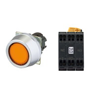 押ボタンスイッチ(φ30), 照光, 金属ベゼル, フルガード形, モーメンタリ, ボタンの色: 橙(透明), IP66, プッシュインPlus端子台, 接点構成: NO/点灯ユニット/NC, LEDランプ色: 橙, LEDランプ電圧: AC/DC24V