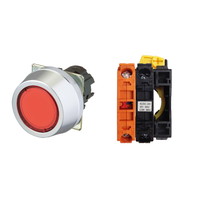 押ボタンスイッチ(φ30), 照光, 金属ベゼル, フルガード形, モーメンタリ, ボタンの色: 赤(透明), IP66, ねじ端子台, 接点構成: -/点灯ユニット/NC, LEDランプ色: 赤, LEDランプ電圧: AC/DC6V