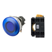 押ボタンスイッチ(φ30), 照光, 金属ベゼル, きのこ形, オルタネイト, ボタンの色: 青(透明), IP66, プッシュインPlus端子台, 接点構成: NO/点灯ユニット/-, LEDランプ色: 青, LEDランプ電圧: AC100/110/120V