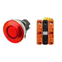 押ボタンスイッチ(φ30), 照光, 金属ベゼル, きのこ形, オルタネイト, ボタンの色: 赤(透明), IP66, ねじ端子台, 接点構成: NC/点灯ユニット/NC, LEDランプ色: 赤, LEDランプ電圧: AC/DC12V