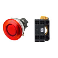 押ボタンスイッチ(φ30), 照光, 金属ベゼル, きのこ形, オルタネイト, ボタンの色: 赤(透明), IP66, プッシュインPlus端子台, 接点構成: -/点灯ユニット/NC, LEDランプ色: 赤, LEDランプ電圧: AC/DC6V