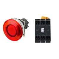 押ボタンスイッチ(φ30), 照光, 金属ベゼル, きのこ形, オルタネイト, ボタンの色: 赤(透明), IP66, プッシュインPlus端子台, 接点構成: NC/点灯ユニット/NC, LEDランプ色: 赤, LEDランプ電圧: AC/DC24V