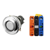 押ボタンスイッチ(φ30), 照光, 金属ベゼル, きのこ形, オルタネイト, ボタンの色: 白(透明), IP66, ねじ端子台, 接点構成: NO/点灯ユニット/NC, LEDランプ色: 白, LEDランプ電圧: AC/DC12V