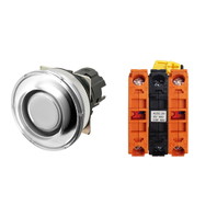 Pushbutton Switch (30-dia.), Lighted, Brushed metal bezel, Mushroom, Alternate, Button color: White (Transparent), IP66, Screw terminal block, Contacts: NC/Lighting Unit/NC, LED lamp color: White, LED Lamp voltage: 12 VAC/DC