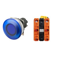 押ボタンスイッチ(φ30), 照光, 金属ベゼル, きのこ形, モーメンタリ, ボタンの色: 青(透明), IP66, ねじ端子台, 接点構成: NC/点灯ユニット/NC, LEDランプ色: 青, LEDランプ電圧: AC200/220/230/240V