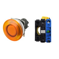 押ボタンスイッチ(φ30), 照光, 金属ベゼル, きのこ形, モーメンタリ, ボタンの色: 橙(透明), IP66, ねじ端子台, 接点構成: NO/点灯ユニット/-, LEDランプ色: 橙, LEDランプ電圧: AC/DC24V