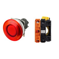 押ボタンスイッチ(φ30), 照光, 金属ベゼル, きのこ形, モーメンタリ, ボタンの色: 赤(透明), IP66, ねじ端子台, 接点構成: -/点灯ユニット/NC, LEDランプ色: 赤, LEDランプ電圧: AC/DC24V