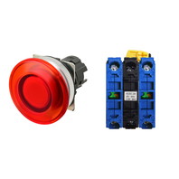 押ボタンスイッチ(φ30), 照光, 金属ベゼル, きのこ形, モーメンタリ, ボタンの色: 赤(透明), IP66, ねじ端子台, 接点構成: NO/点灯ユニット/NO, LEDランプ色: 赤, LEDランプ電圧: AC/DC12V