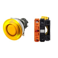 押ボタンスイッチ(φ30), 照光, 金属ベゼル, きのこ形, モーメンタリ, ボタンの色: 黄(透明), IP66, ねじ端子台, 接点構成: -/点灯ユニット/NC, LEDランプ色: 黄, LEDランプ電圧: AC100/110/120V