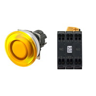 押ボタンスイッチ(φ30), 照光, 金属ベゼル, きのこ形, モーメンタリ, ボタンの色: 黄(透明), IP66, プッシュインPlus端子台, 接点構成: NO/点灯ユニット/NC, LEDランプ色: 黄, LEDランプ電圧: AC100/110/120V