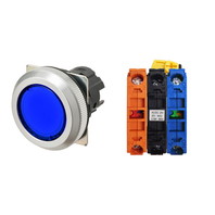 押ボタンスイッチ(φ30), 照光, 金属ベゼル, 平形, オルタネイト, ボタンの色: 青(透明), IP66, ねじ端子台, 接点構成: NO/点灯ユニット/NC, LEDランプ色: 青, LEDランプ電圧: AC/DC12V