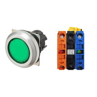 押ボタンスイッチ(φ30), 照光, 金属ベゼル, 平形, オルタネイト, ボタンの色: 緑(透明), IP66, ねじ端子台, 接点構成: NO/点灯ユニット/NC, LEDランプ色: 緑, LEDランプ電圧: AC100/110/120V