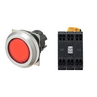 押ボタンスイッチ(φ30), 照光, 金属ベゼル, 平形, オルタネイト, ボタンの色: 赤(透明), IP66, プッシュインPlus端子台, 接点構成: NO/点灯ユニット/NC, LEDランプ色: 赤, LEDランプ電圧: AC/DC12V