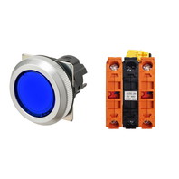 押ボタンスイッチ(φ30), 照光, 金属ベゼル, 平形, モーメンタリ, ボタンの色: 青(透明), IP66, ねじ端子台, 接点構成: NC/点灯ユニット/NC, LEDランプ色: 青, LEDランプ電圧: AC/DC24V