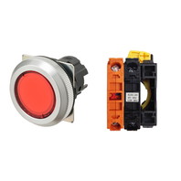 押ボタンスイッチ(φ30), 照光, 金属ベゼル, 平形, モーメンタリ, ボタンの色: 赤(透明), IP66, ねじ端子台, 接点構成: -/点灯ユニット/NC, LEDランプ色: 赤, LEDランプ電圧: AC/DC12V