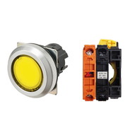 押ボタンスイッチ(φ30), 照光, 金属ベゼル, 平形, モーメンタリ, ボタンの色: 黄(透明), IP66, ねじ端子台, 接点構成: -/点灯ユニット/NC, LEDランプ色: 黄, LEDランプ電圧: AC/DC12V