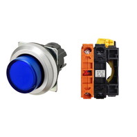 押ボタンスイッチ(φ30), 照光, 金属ベゼル, 突出形, オルタネイト, ボタンの色: 青(透明), IP66, ねじ端子台, 接点構成: -/点灯ユニット/NC, LEDランプ色: 青, LEDランプ電圧: AC/DC12V