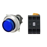 押ボタンスイッチ(φ30), 照光, 金属ベゼル, 突出形, オルタネイト, ボタンの色: 青(透明), IP66, プッシュインPlus端子台, 接点構成: NO/点灯ユニット/NC, LEDランプ色: 青, LEDランプ電圧: AC/DC6V