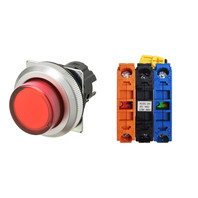 押ボタンスイッチ(φ30), 照光, 金属ベゼル, 突出形, オルタネイト, ボタンの色: 赤(透明), IP66, ねじ端子台, 接点構成: NO/点灯ユニット/NC, LEDランプ色: 赤, LEDランプ電圧: AC/DC6V