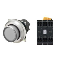 押ボタンスイッチ(φ30), 照光, 金属ベゼル, 突出形, オルタネイト, ボタンの色: 白(透明), IP66, プッシュインPlus端子台, 接点構成: NC/点灯ユニット/NC, LEDランプ色: 黄, LEDランプ電圧: AC100/110/120V