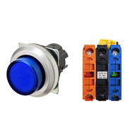 押ボタンスイッチ(φ30), 照光, 金属ベゼル, 突出形, モーメンタリ, ボタンの色: 青(透明), IP66, ねじ端子台, 接点構成: NO/点灯ユニット/NC, LEDランプ色: 青, LEDランプ電圧: AC/DC24V
