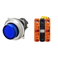 押ボタンスイッチ(φ30), 照光, 金属ベゼル, 突出形, モーメンタリ, ボタンの色: 青(透明), IP66, ねじ端子台, 接点構成: NC/点灯ユニット/NC, LEDランプ色: 青, LEDランプ電圧: AC/DC12V