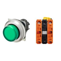 押ボタンスイッチ(φ30), 照光, 金属ベゼル, 突出形, モーメンタリ, ボタンの色: 緑(透明), IP66, ねじ端子台, 接点構成: NC/点灯ユニット/NC, LEDランプ色: 緑, LEDランプ電圧: AC/DC6V