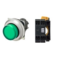 押ボタンスイッチ(φ30), 照光, 金属ベゼル, 突出形, モーメンタリ, ボタンの色: 緑(透明), IP66, プッシュインPlus端子台, 接点構成: -/点灯ユニット/NC, LEDランプ色: 緑, LEDランプ電圧: AC100/110/120V