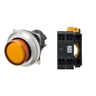 押ボタンスイッチ(φ30), 照光, 金属ベゼル, 突出形, モーメンタリ, ボタンの色: 橙(透明), IP66, プッシュインPlus端子台, 接点構成: -/点灯ユニット/NC, LEDランプ色: 橙, LEDランプ電圧: AC100/110/120V
