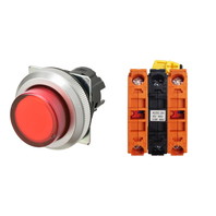 押ボタンスイッチ(φ30), 照光, 金属ベゼル, 突出形, モーメンタリ, ボタンの色: 赤(透明), IP66, ねじ端子台, 接点構成: NC/点灯ユニット/NC, LEDランプ色: 赤, LEDランプ電圧: AC/DC12V