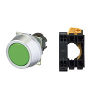 押ボタンスイッチ(φ30), 非照光, 金属ベゼル, フルガード形, オルタネイト, ボタンの色: 緑(不透明), IP66, プッシュインPlus端子台, 接点構成: -/-/NC