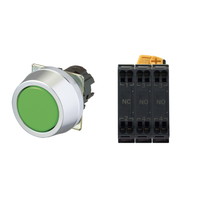 押ボタンスイッチ(φ30), 非照光, 金属ベゼル, フルガード形, オルタネイト, ボタンの色: 緑(不透明), IP66, プッシュインPlus端子台, 接点構成: NO/NO/NC