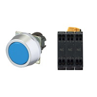 押ボタンスイッチ(φ30), 非照光, 金属ベゼル, フルガード形, モーメンタリ, ボタンの色: 青(不透明), IP66, プッシュインPlus端子台, 接点構成: NC/NC/NC